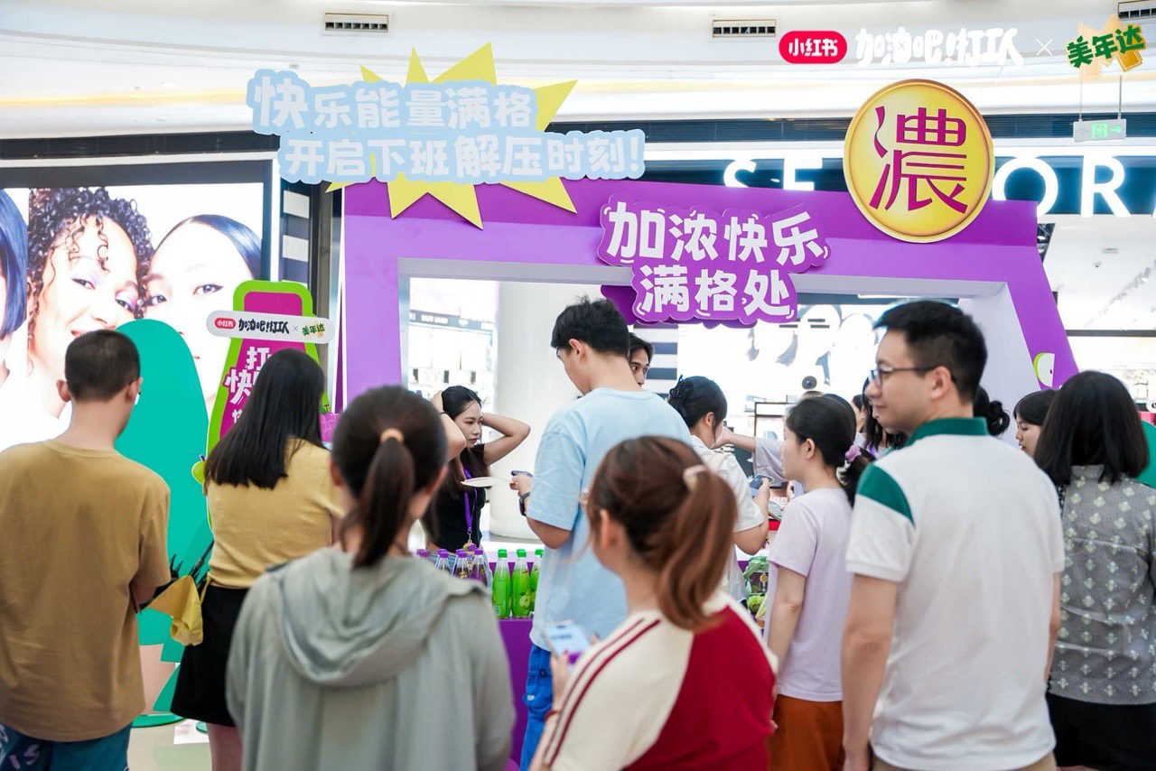 一、 美年达 × 小红书“加油吧打工人”快闪活动:在都市CBD构建情绪泄压阀